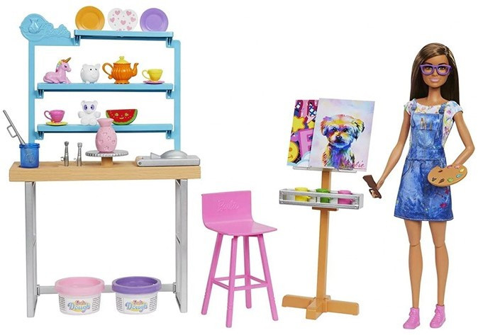 Barbie és a művészeti szerep: Barbie mint művész szerepel, lehetővé téve a gyerekek számára, hogy őt festőként, illusztrátorként vagy egyéb kreatív szerepben lássák. A szett segít a gyerekeknek megismerni a művészeti világot és a kreativitásukat kifejezni.