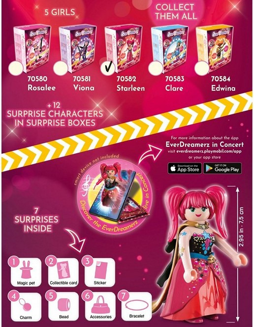 • Amikor a varázslatos kaland véget ért, helyezze vissza az összes darabot a dobozba a könnyű tárolás érdekében. Gyűjtsd össze az összes EverDreamerz Music World készletet (#70580-70585, 70152 - mindegyik külön vásárolható meg), hogy még több szórakozásban részesülj. A készlet Starleent, mikrofon varázst, szilikon karkötőt, gyöngyöket, kereskedőkártyát, matricákat és sok egyéb kiegészítőt tartalmaz