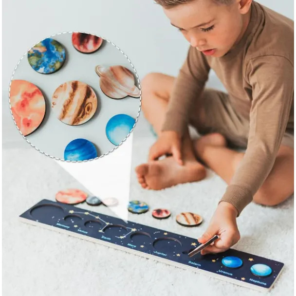 Ez a Fa Bolygórendszer Puzzle egy különleges, kreatív játék, amely egy lenyűgöző, fából készült bolygórendszert ábrázol. A puzzle remek választás lehet mindazok számára, akik szeretik a tudományos témájú, szórakoztató és oktató játékokat.