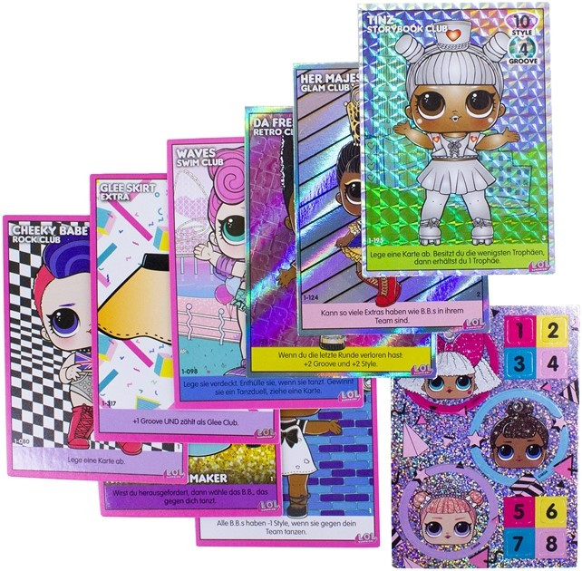 - 8 db kártya egy csomagban: Minden csomag 8 különböző kártyát tartalmaz, amelyek a LoL Dance Off tematikáját követik.