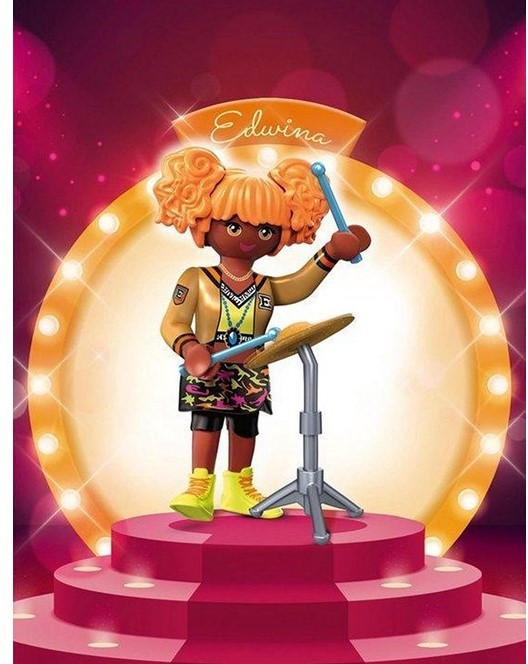 A készlet tartalma: Figurák: 1 Edwina; Állatok: 1 macska; Tartozékok: 1 karkötő, 1 dob medál, 1 mikrofon, 1 csokor virág, 1 dobkészlet, 1 hajkefe, 1 mobiltelefon, 1 autogramkártya, 1 állványtányér, 1 kézitáska