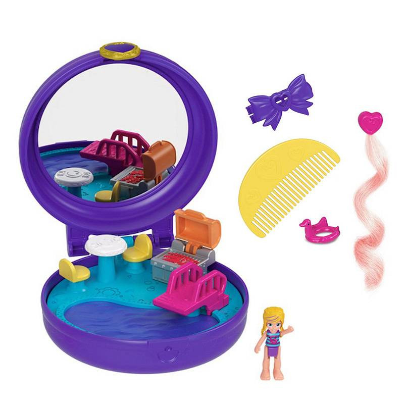 Ideje a Polly Pocket™ haj- és szépségápolási szórakozásnak! Minden imádnivaló Clip & Comb™ kompakt haj- és szépségjátékot kínál medencés témakörben.